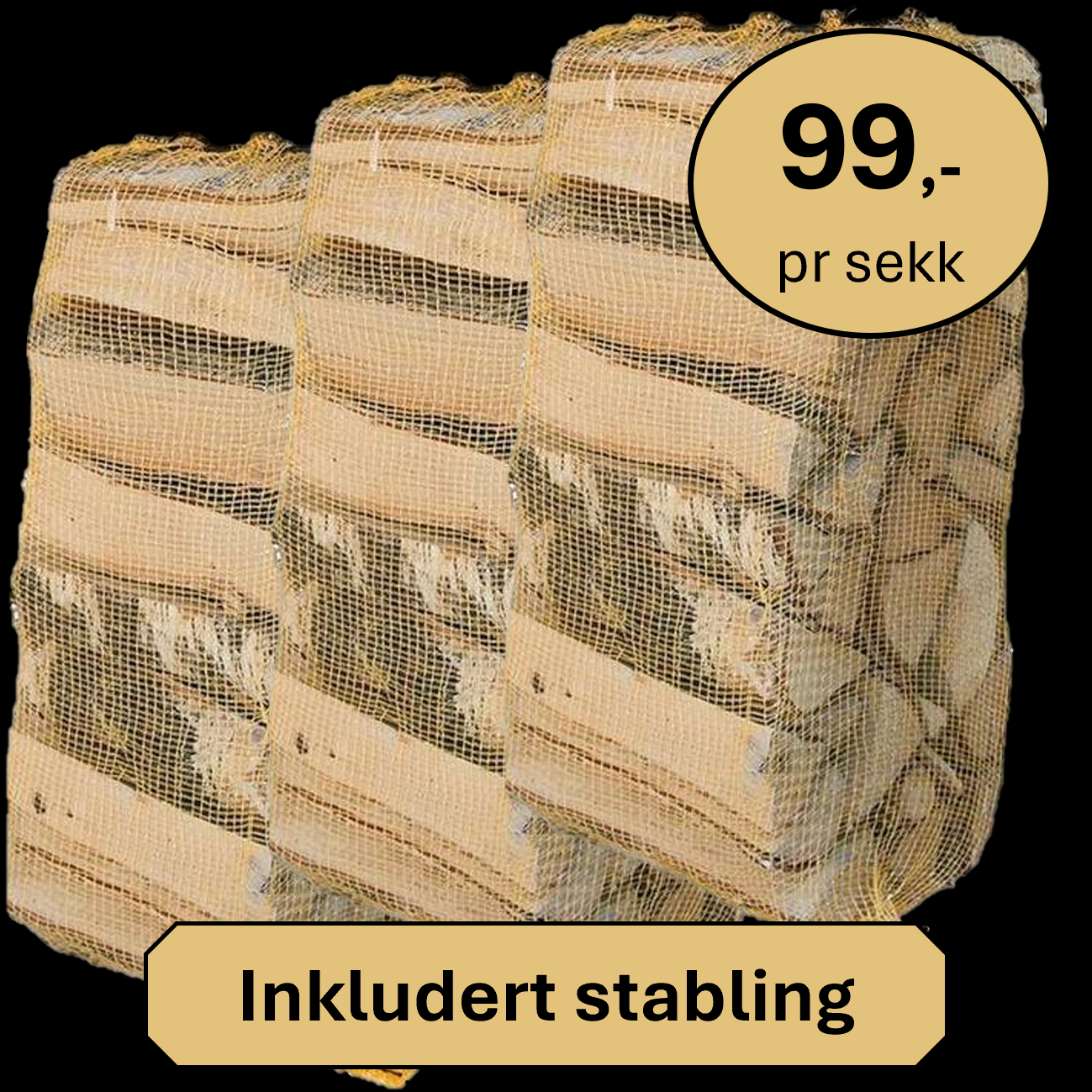 30 sekker tørr bjørkeved (40 liter) hjemlevert – ferdig stablet der du ønsker og klar til bruk. Enkelt, raskt og pålitelig!